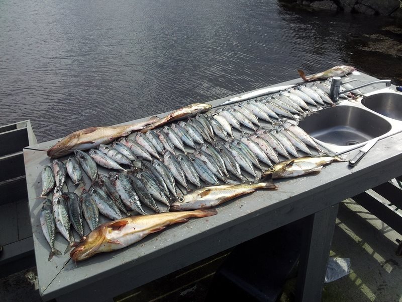 Vyrazili jsme na tresky do stejných míst, kde jsme včera večer byli tak úspěšní. Zhruba po hodině se spustil takový liják, že nás to donutilo k návratu na základnu. Zmokli jsme až na kost a neměli jsme ani paví očko. Mimochodem, uplatnil jsem poučku, kterou mi sdělila námořnice Růžena, a to že když vidím na hladině pěnu, máme zdrhat. Bylo to zvláštní, ale po celé hladině se opravdu objevila pěna. Na základně proběhlo sušení, zahřívání, rychlé převlékání a opět krátká porada. Když přestalo pršet, muselo se něco stát, musela přijít změna. Proto jsem se rozhodl, vzít zodpovědnost na sebe a sedl jsem za kormidlo. Vyvedl jsem naši loď z přístavu a zamířil na moře. Ještě jedna drobná poznámka. Překvapilo mě, že já jediný jsem si do výbavy zabalil píšťalku. Věc, která je malá a vejde se do kapsy, ale zároveň může zachránit životy. Rose (Kate Winslet) by mohla vyprávět . . . co jí zachránilo na Titanicu život . . . obyčejná píšťalka. Za chvilku začalo opět drobně pršet, ale nám to nevadilo. Kopeček s Lukášem díky sonaru našli hejno makrel a začali jsme je tahat na palubu. Pro makrely to byl holocaust . . . vyhlazení . . . masakr . . . debakl . . . prostě odpoledne jsme se vrátili "domů" a na lodi 53 makrel a 2 tresky. Kopeček stál ve vlnách na lodi, tahal ryby z moře a štěstím křičel "kluci, to je lepší než v samoobsluze". Vůbec nám nevadilo, že lilo jako z konve. Byl to déšť vítězů ! Jelikož ryby zabíjíme již na moři, tak nás čekalo pouze kuchání a filetování. Díky této dávce už není pohled do mrazáku tak smutný.
