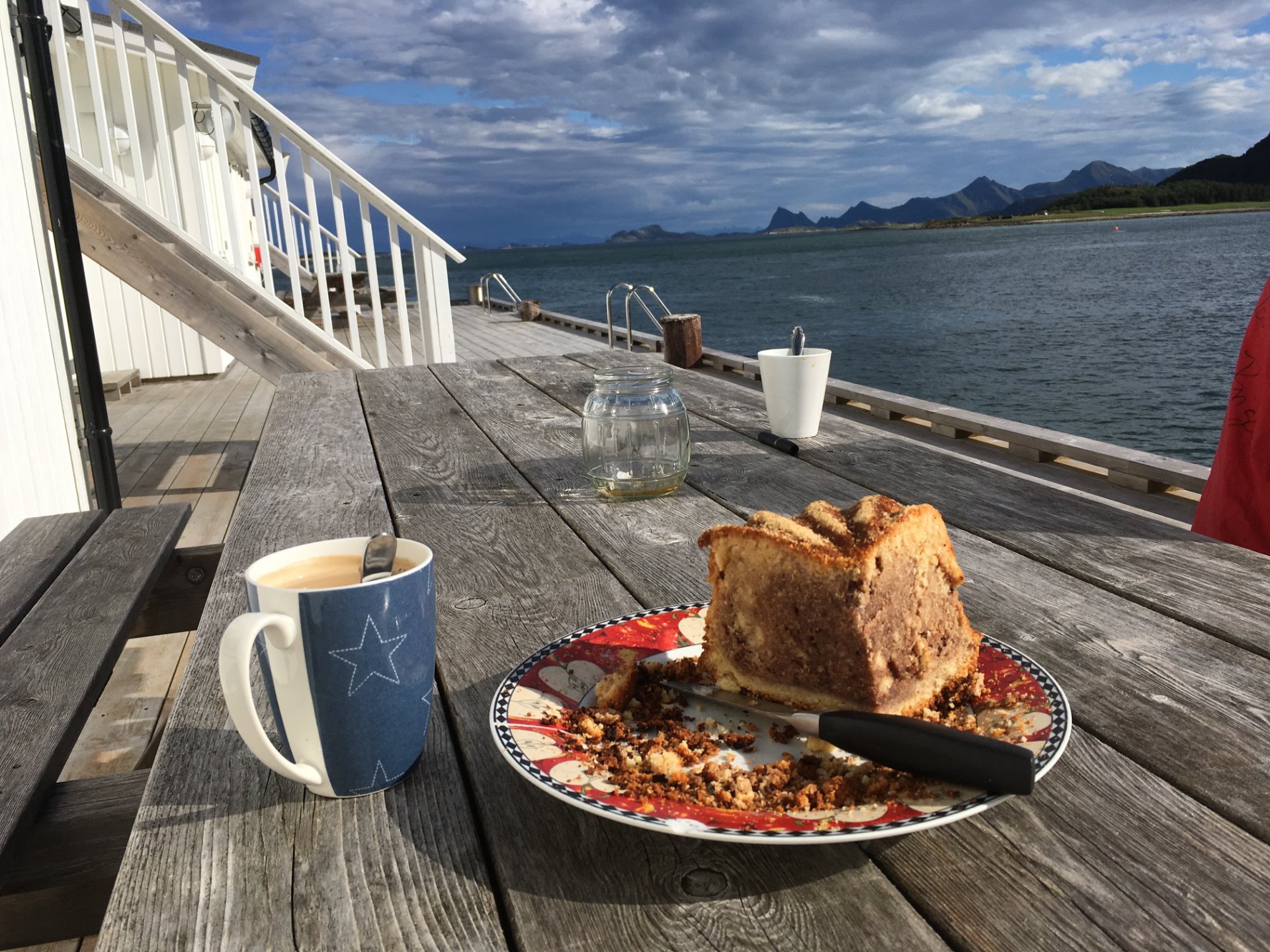 Ráno svítilo krásně sluníčko, tak jsme si dali snídani ven a nadlábli se pod dohledem majestátných kopců a s výhledem na Lofoty. Letos jsem pro dokonalou dokumentaci našich úlovků přivezl do Norska kameru, kterou jsem hned dnes připevnil na rám lodi, aby byl zaznamenán každý halibut, kterého vytáhneme i na videu . . . bohužel brzy došla baterka, tak z toho ZATÍM není nic, ale chystám se to vyřešit. Naštěstí jsme zrovna halibuta nechytili :-) Vyrazili jsme tedy poprvé na moře ! Vyjížděli jsme za poměrně hezkého počasí s podporou sluníčka. Zkoušeli jsme všechny nejlepší návnady, které jsme si do Norska přivezli a pořád nic . . . jako ale vůbec NIC ! Chytli jsme pár dorostenců, které bylo ale potřeba propustit pro budoucí generace rybářů. Na větší rybu jsme se tedy načekali opravdu dlouho. Chytil ji až Mirek, který vytáhl tresku, co už splňovala parametry pro její transport do mrazáku :-) Jinak to byla bída. Pár makrel a asi 5 tresek ? Na partu tak zkušených a hlavně dobrých rybářů je to opravdu žalostně málo :-) Já jsem nechytil třeba vůbec nic . . . to se mi ještě nikdy v Norsku nestalo. Celkem jsem vytáhnul z moře asi 5 markel, ale byla by mi hanba si je nechat . . . vrátil jsem je do moře s tím, ať pošlou rodiče. Vrátili jsme se pozdě odpoledne za silného větru a deště. Musím přiznat, že jsem nakonec asi ocenil náš slabý úlovek, protože filetovat ryby v tom počasí, které panovalo, není úplně mým koníčkem :-)