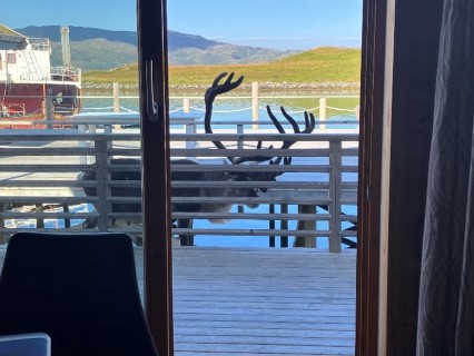 Přátelé, kolegové, kamarádi, dnešek (myšleno včerejšek, tj. středa) byl přesně takovým dnem, který chcete s kamarády v Norsku zažít. Probudili jsme se do nádherného dne, který sliboval teploty kolem 28 stupňů, což není úplně to, co v Norsku chceme zažívat, ale zároveň jsme věděli, že odpoledne se vítr uklidní na takovou úroveň, že nás "pustí" na otevřené moře, což je pro nás vlastně poslední šance, jak dostat větší množství ryb do mrazáku. Od rána jsme všude kolem "našeho" domu potkávali soby, kteří hledali kousek stínu, kde by se ukryli před vedrem, na které zde opravdu nemohou být zvyklí. Byla to nádherná podívaná.