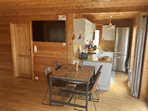 Čtvrtek je poslední – téměř celý den v Norsku. Večer balíme a nasedáme do auta. Po cestě plánujeme opět navštívit Arctic Circle Centre a kouknout na nabídku suvenýrů. Cesta k němu je tu od severu zkomplikována trajektem, který v jednom místě nahrazuje mezinárodní silnici E6 a na který se chceme ve 4:40 nalodit. Slíbil jsem vám prohlídku našeho ubytování v Mikkelvik Brygge. Tento resort na ostrově Ringvassøya nabízí zatím dva druhy ubytování a to buď pronájem celého domu (6 ložnic) nebo pouze apartmán v přízemí či v patře (www.mikkelvik.com). My jsme si pro náš pobyt zvolili přízemní apartmán s terasou a třemi ložnicemi. Na mole před námi je pak filetovací místnost, velký mrazák a celé důležité zázemí pro rybáře. Jak jsem avizoval, majitel plánuje v budoucnu přestavět loď, kterou možná znáte z našich fotek - dříve sloužila jako tankovací stanice a nyní plní funkci vlnolamu, na luxusní apartmán.