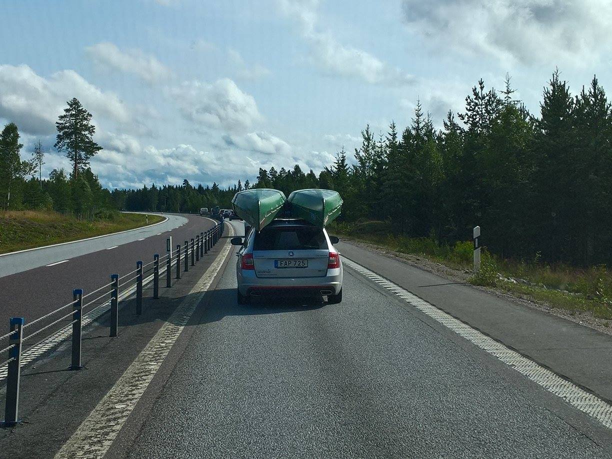 Po vylodění v Ornes jsme na nic nečekali a pádili směr Švédsko. Hranice byla zdolána bez celních procedur, protože byla hluboká noc. Chvilku jsem zvažoval, že pojedu bez světel, aby nás neviděli, ale to jsem rychle zavrhnul. Hlavně, že to dobře dopadlo. Prvních pár kilometrů ve Švédsku jsem málem trefil lišku a opravdu trefil nějakého ptáka. Pak vyrazil na svůj úsek Kopeček a málem sestřelil losa. Poznal jsem to tak, že jsem sletěl ze sedačky, kde jsem ležel a akorát usínal. Zahučel jsem na podlahu a rozseknul si koleno. Když se rozednělo, jelo se hned líp a my se mohli i kochat nádhernou švédskou krajinou. Od Stockholmu nahoru je Švédsko opravdu nádherné. Lesy, jezery, fjordy . . . jako z románů Rosamunde Pilcher :-) Naopak od Stockholmu dolů je to docela bída. Tentokráte jsme jeli non stop, abychom byli v Praze nějak rozumně. Bylo to vyčerpávající, ale smrad a touha po našich rodinách nás hnal vpřed :-)